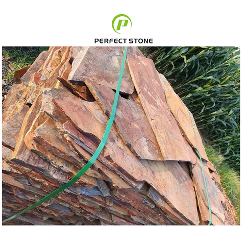 चीनी प्राकृतिक दीवार यादृच्छिक पीला/जंग/गोल्डन स्लेट ढीला फ़र्श टाइल्स पत्थर