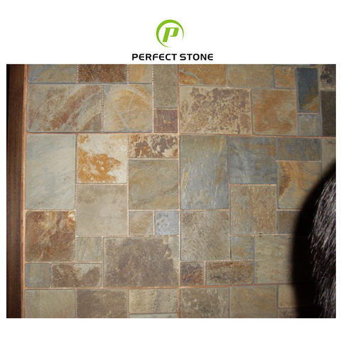 Cultuur Stenen Mozaïek Roestige Leisteen Veelkleurige Wandbekleding Exterieur Fineer Vloerstapel Cultuur Steen Mozaïek Roestige Leistenen Tegels